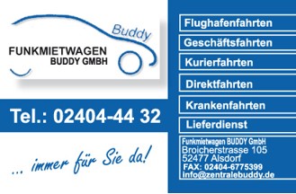 Funkmietwagen Buddy GmbH Taxiunternehmen Kurierdienst Lieferdienst 52477 Alsdorf