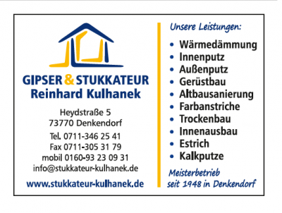 Stukkateurmeisterbetrieb Reinhard Kulhanek 73770 Denkendorf.